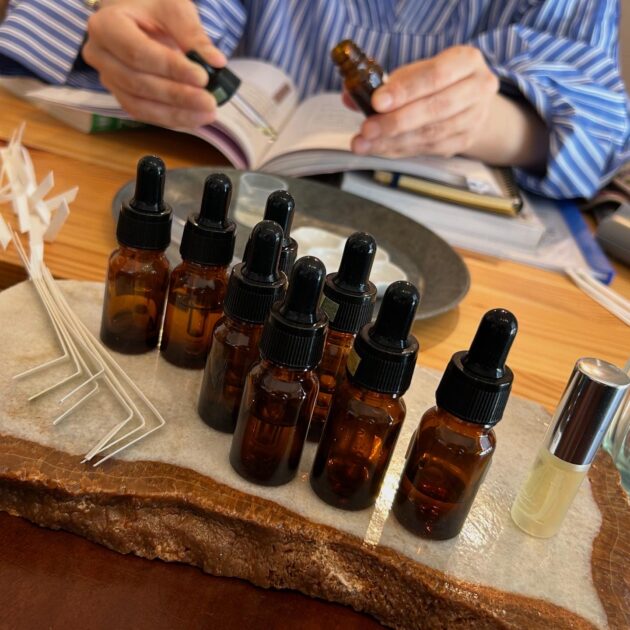 芳樟やヒノキ、ほんの少しのペパーミントなども加えて。